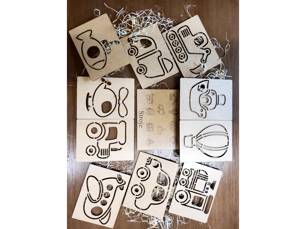 🛠️ 10 obkreslovacích šablon: Různorodé motivy vozidel a strojů na souši, ve vzduchu i pod vodou.